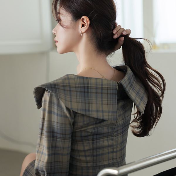 都市 格子 学院风 褶皱 弹力 连衣裙