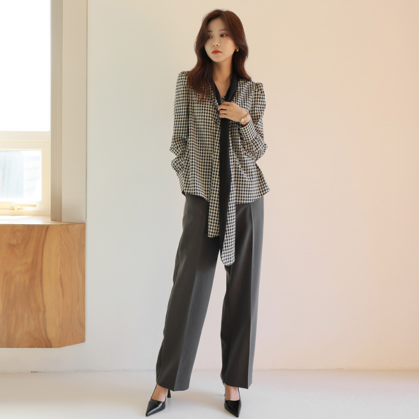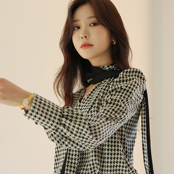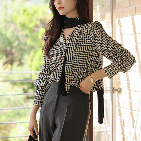 特别服务 格子 图案 领带 点缀 罩衫