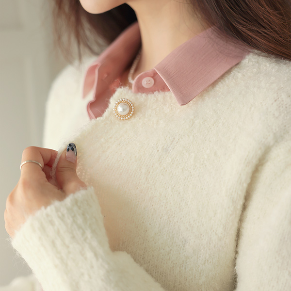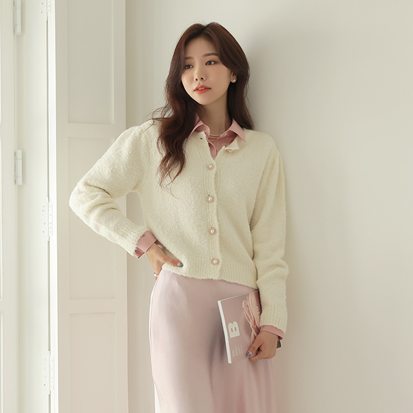 珍珠扣 泡泡袖 松软 羊毛 开衫
