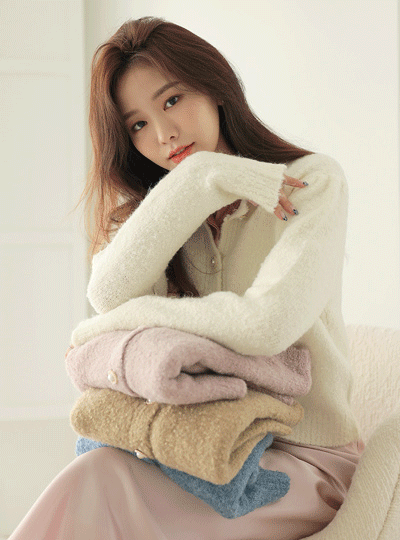珍珠扣 泡泡袖 松软 羊毛 开衫