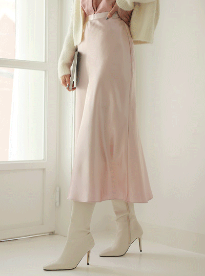 有光泽 绸缎 长款 喇叭 裙子