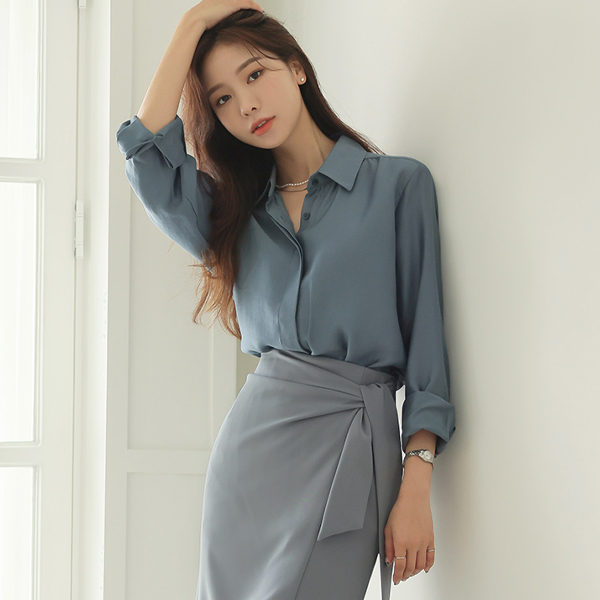 侧纽 裹身 风格 中长 裙子