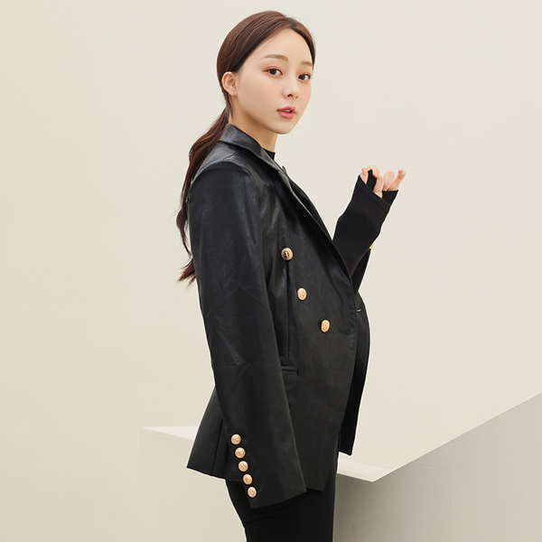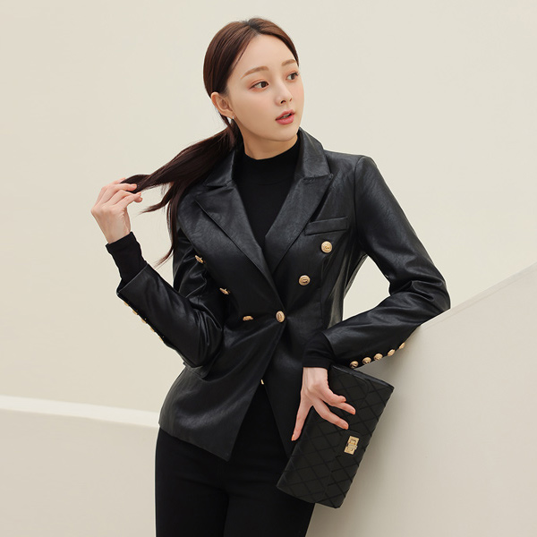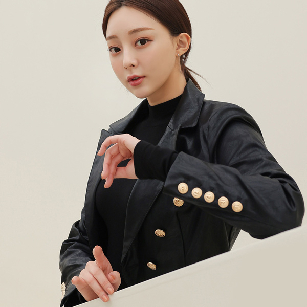 有光泽 咔嚓咔嚓 人造皮夹 金色纽扣 夹克