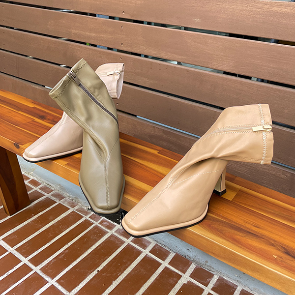 缝线 点缀 人造皮夹 袜子 桃皮拉绒 短靴