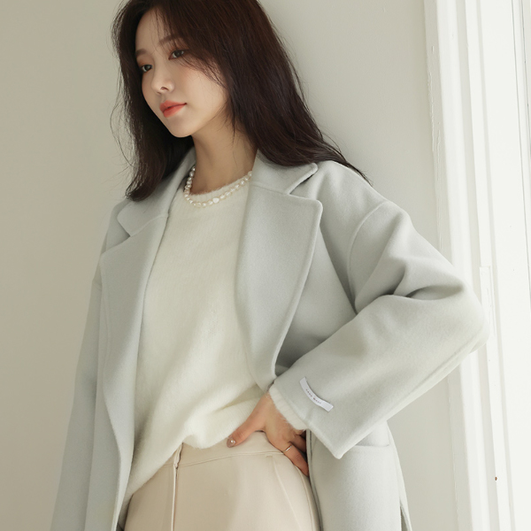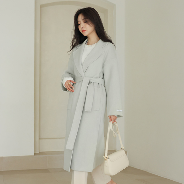 柔丝 颜色 束带 羊毛 手工 长款大衣