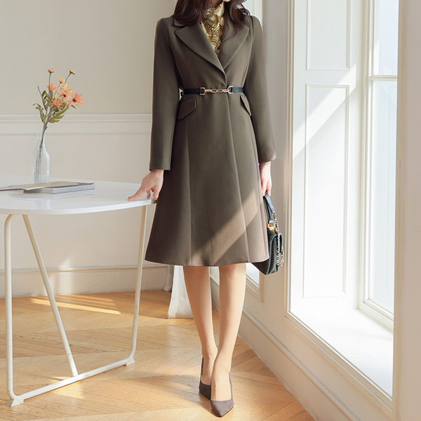 淑女 链条 腰带 A字型 羊毛 大衣