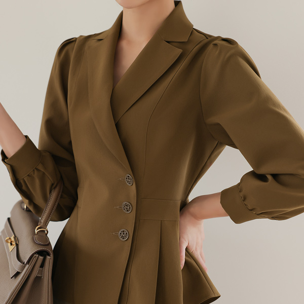 双层领 Waffle 纽扣 荷叶边 罩衫