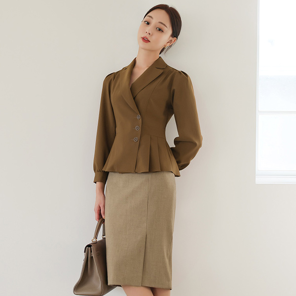 嘴唇口袋 侧纽 开衩 弹力 裙子