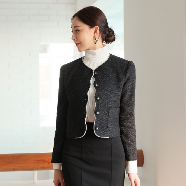 黑珍珠 衬里 波浪卷 粗呢 羊毛 夹克