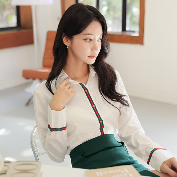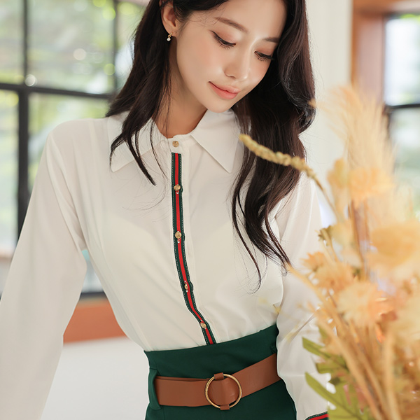 颜色 绷带 金色纽扣 弹力 衬衫 罩衫
