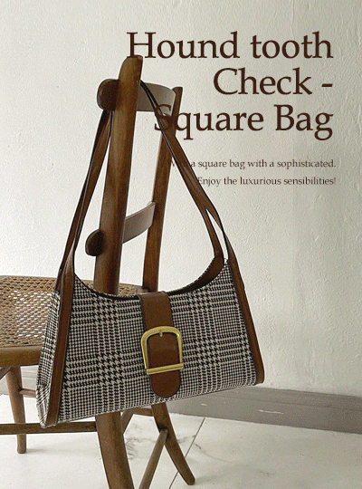 Hound Tooth 格子 人造皮革配色 方形斜跨包