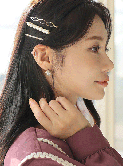珍珠&镶钻 黄金 发夹(3SET)