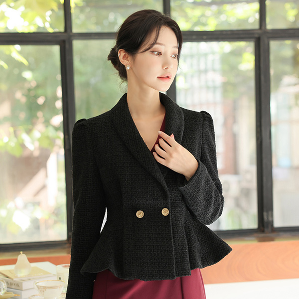 羊毛粗呢 披巾领 泡泡肩 荷叶边 夹克