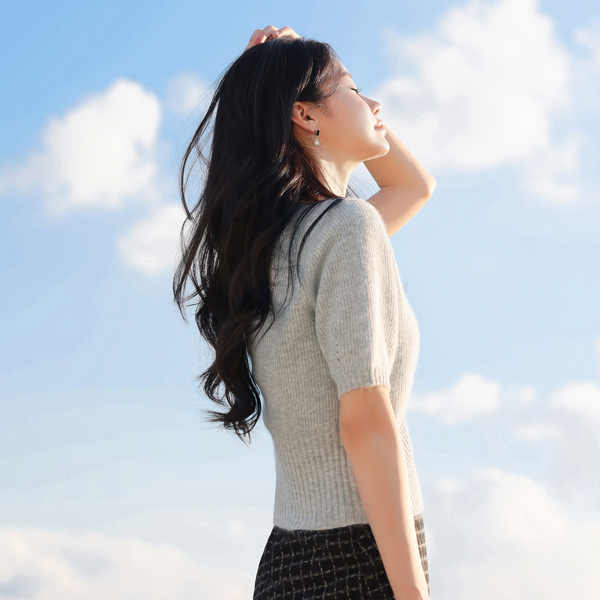 浣熊羊毛 镂空袖子 八字纹 圆领 针织衫