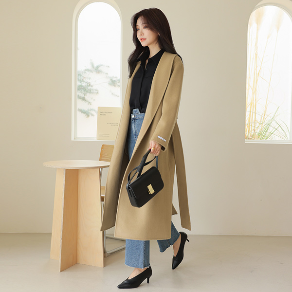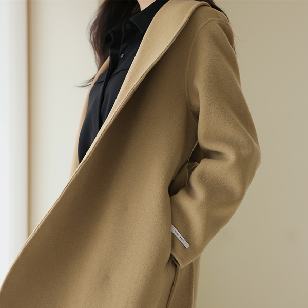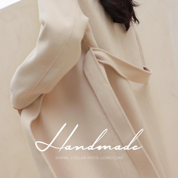 敞开式 宽松 披巾领 手工 羊毛 长款大衣