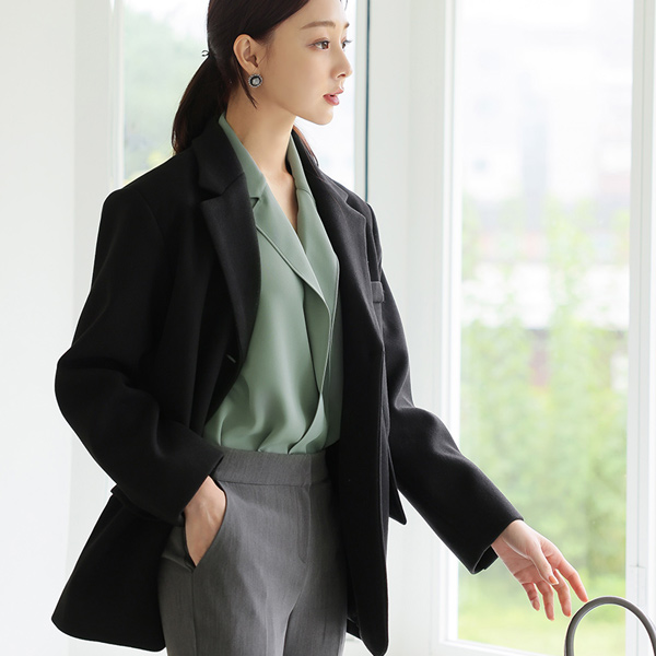 开叉 口袋 短上衣 羊毛 大衣