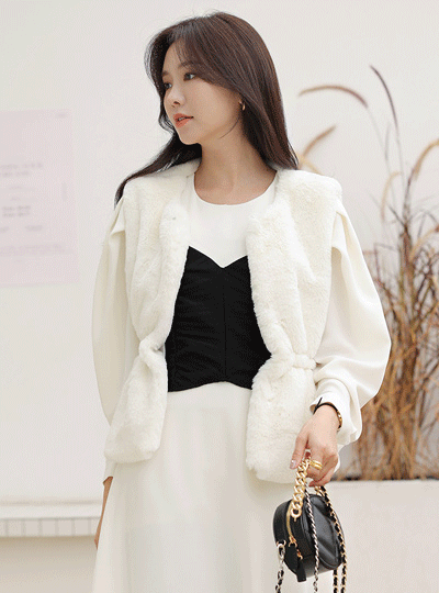 柔丝 人造 皮草大衣 抽绳 马甲