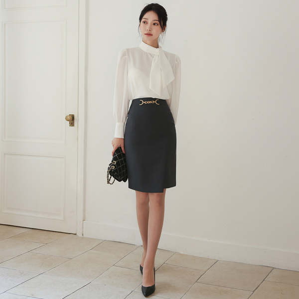 围巾领 泡泡袖 宝石 袖口 罩衫