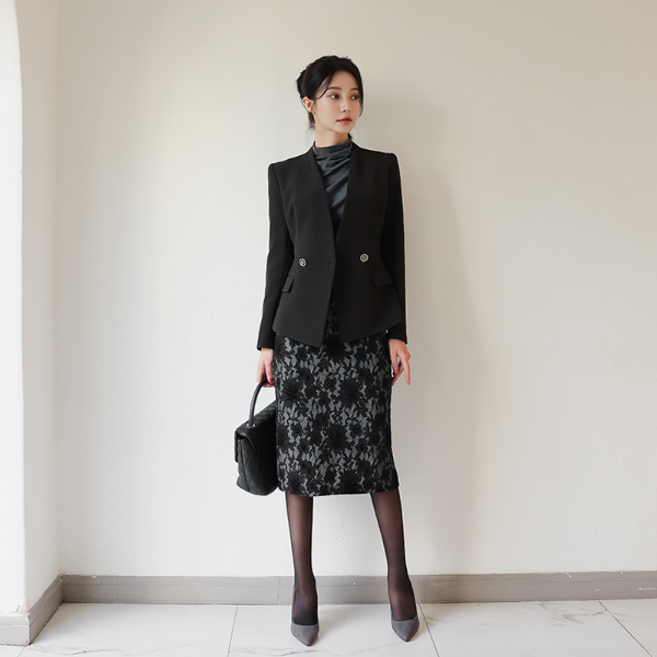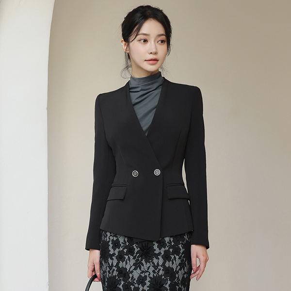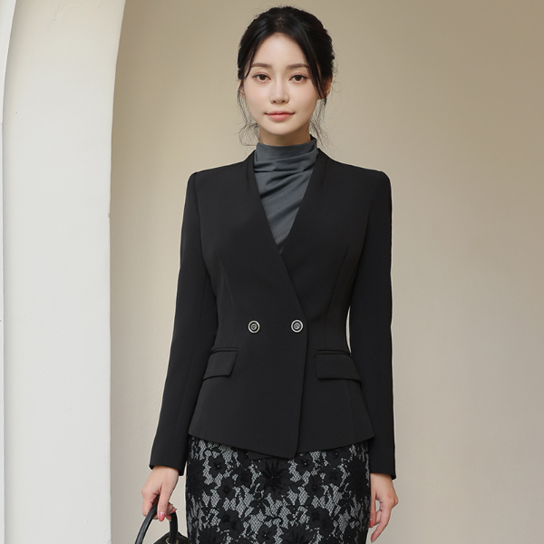 边缘肩膀线条 银色线条 双排扣 夹克