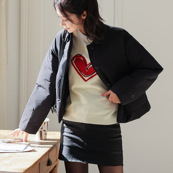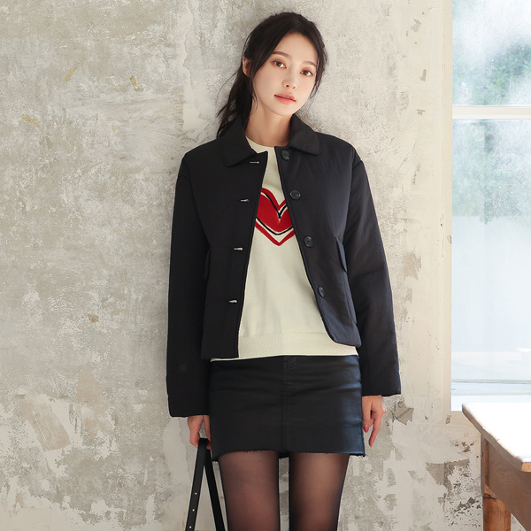 单领 有盖口袋 棉 羽绒服 短夹克