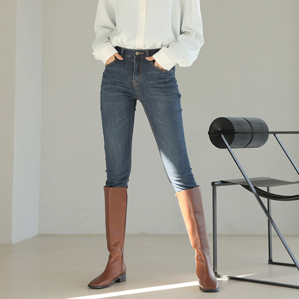 复古 水洗 细密 弹力 衬里加绒 牛仔裤