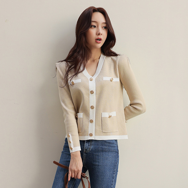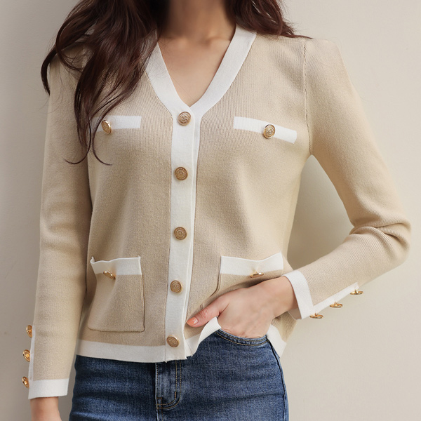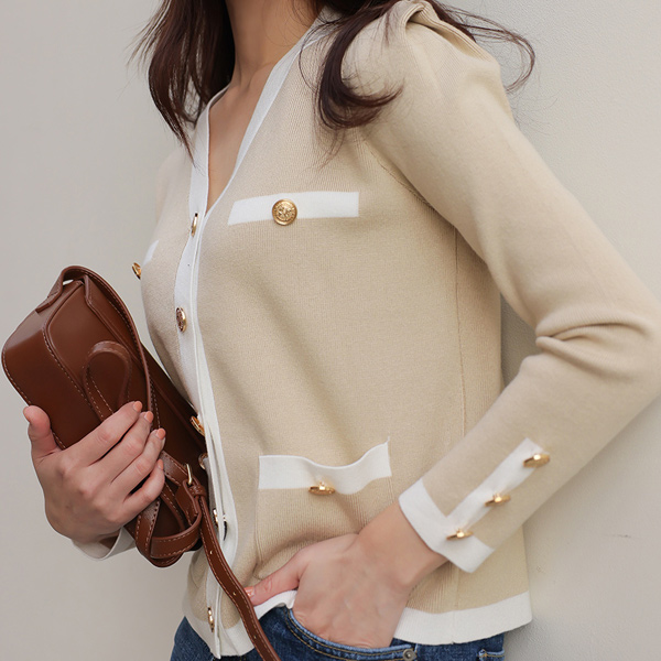 古风 金色纽扣 花边 边缘肩膀线条 开衫