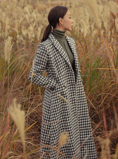 犬牙格子花纹 格子 A字型 双排扣 长款大衣