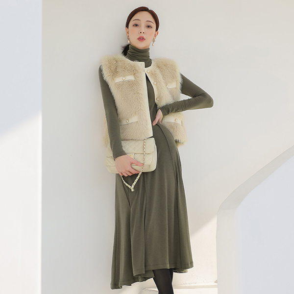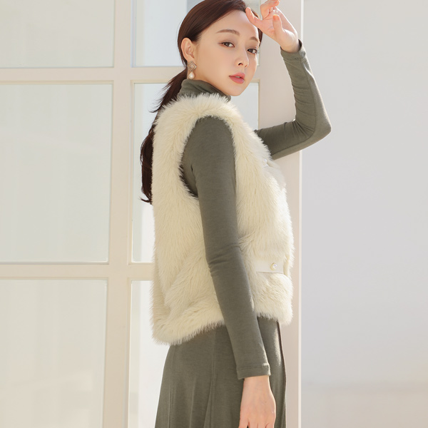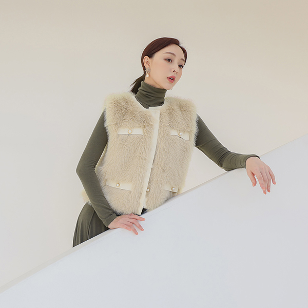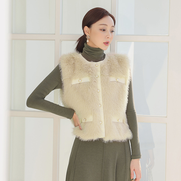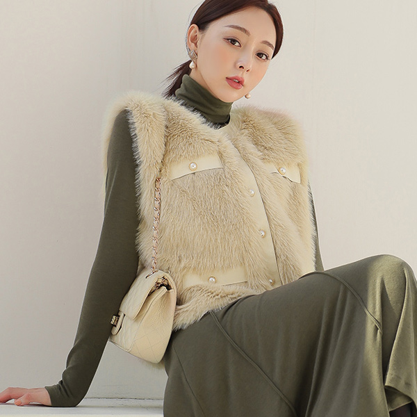 人造皮夹 花边 珍珠 ECO-毛 马甲