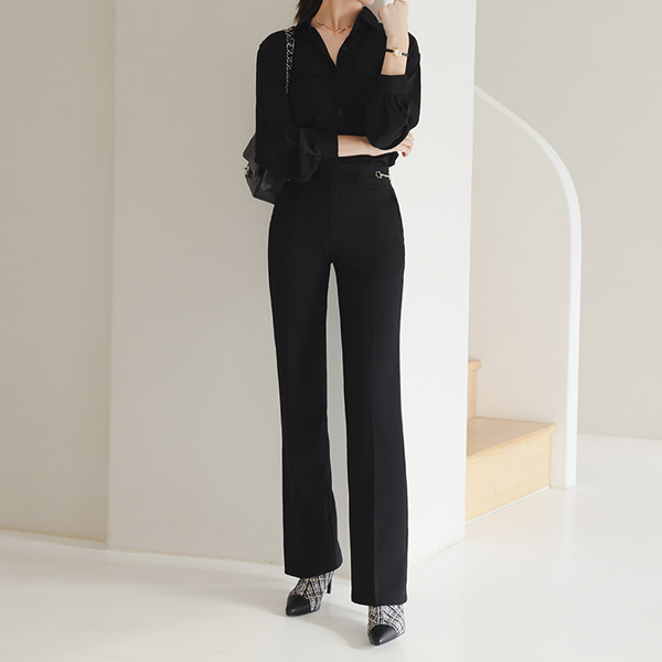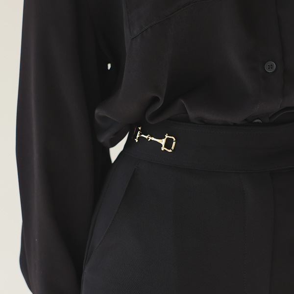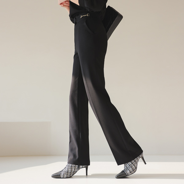 双 黄金 扣带 装饰 弹力 宽松长裤