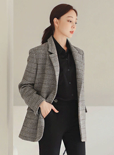 人字呢 格子 单扣 羊毛夹克