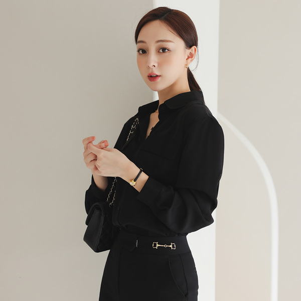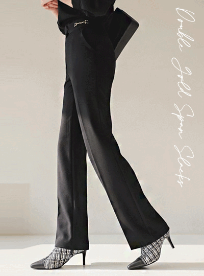 双 黄金 扣带 装饰 弹力 宽松长裤