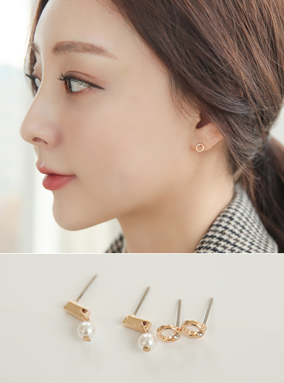 日常 珍珠 镶钻 (套装) 迷你 耳环((6set)