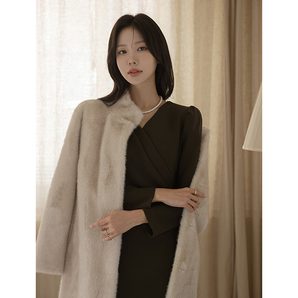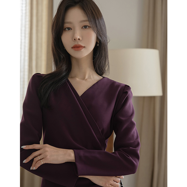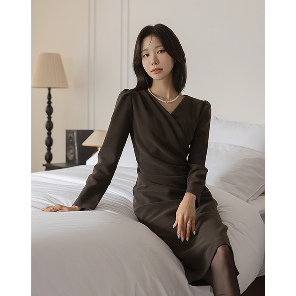 侧纽 华丽 交叉领 弹力 中长 连衣裙(winter)