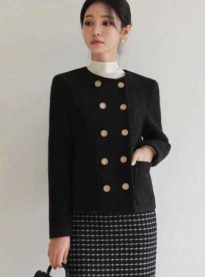 古风 双 金色纽扣 华夫格 羊毛 夹克