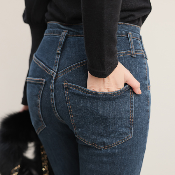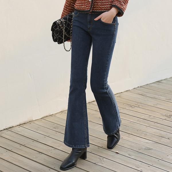 独特 开叉 细密 喇叭 牛仔裤(衬里加绒)