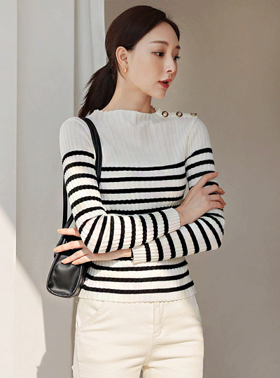 嘴唇领 金色 条纹 条绒 针织t恤