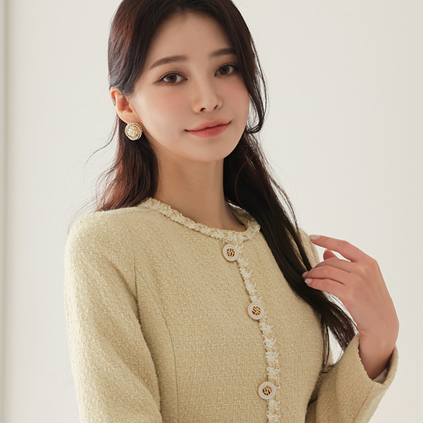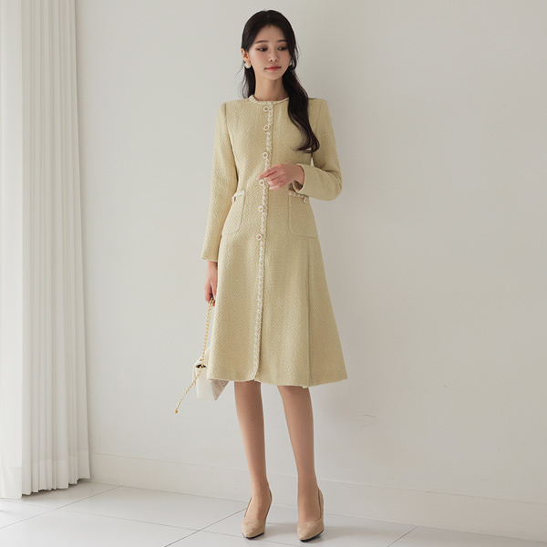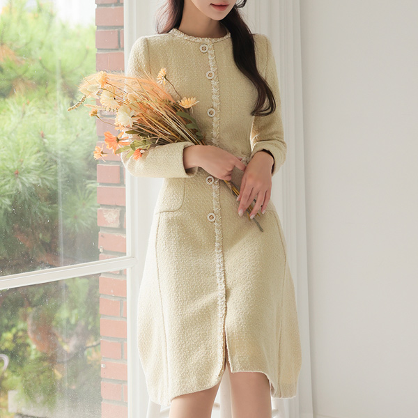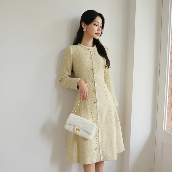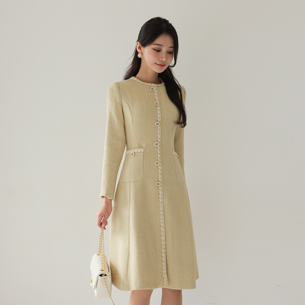 流苏 编织 古风扣 粗呢 A字型 羊毛 连衣裙