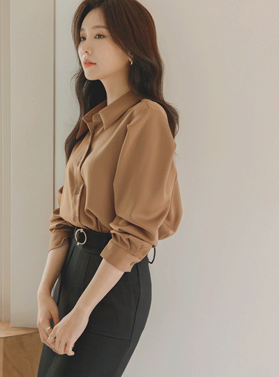 有光泽 绸缎 肩膀 细褶 单领 罩衫