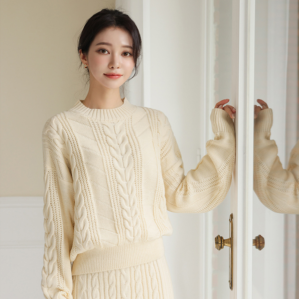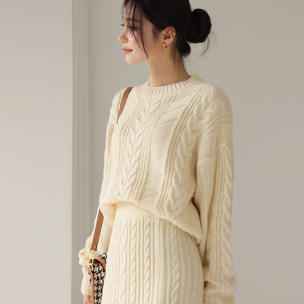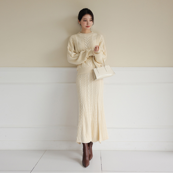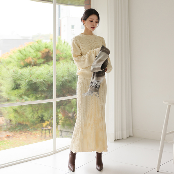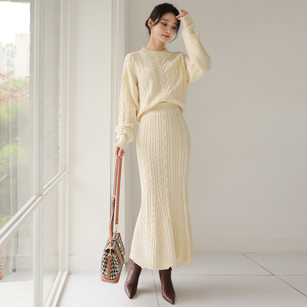 舒适 缆绳 针织衫&美人鱼 裙子 SET