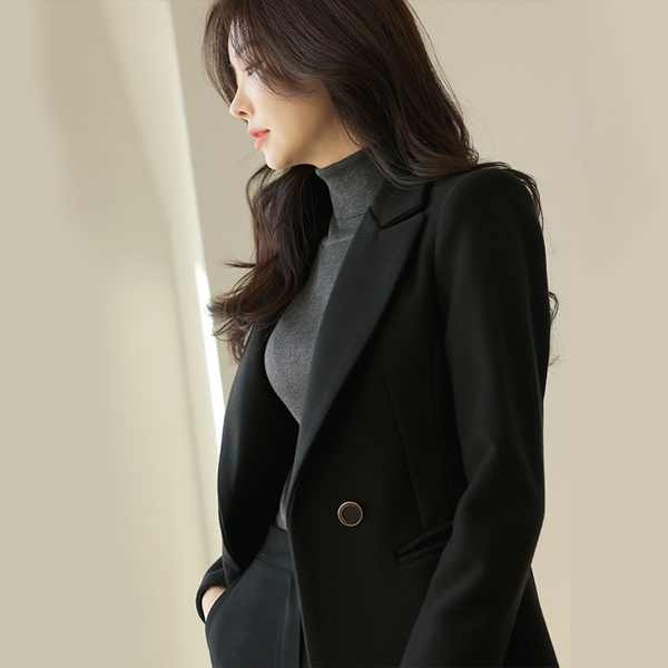 官方网站 细纹 修身 短上衣 羊毛 大衣