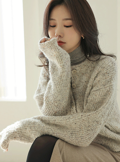 混合颜色 点缀 羊毛&羊驼毛 结子花式 开衫