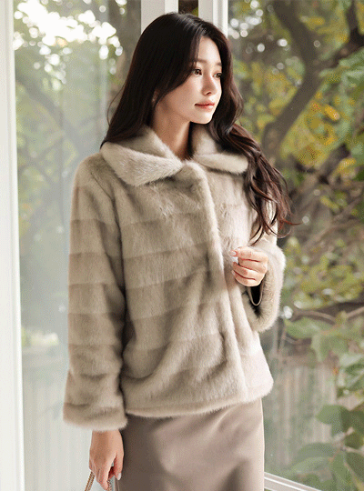 双色 明暗 Eco 貂皮毛 领子 夹克