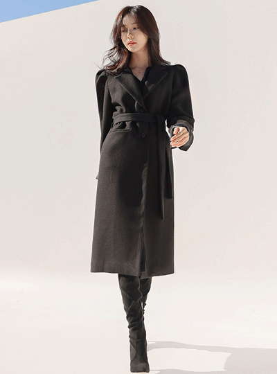 ODE 泡泡袖 束带 羊毛 长款大衣