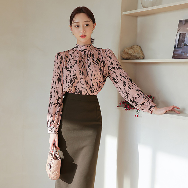 半高领 丝滑 豹纹 罩衫