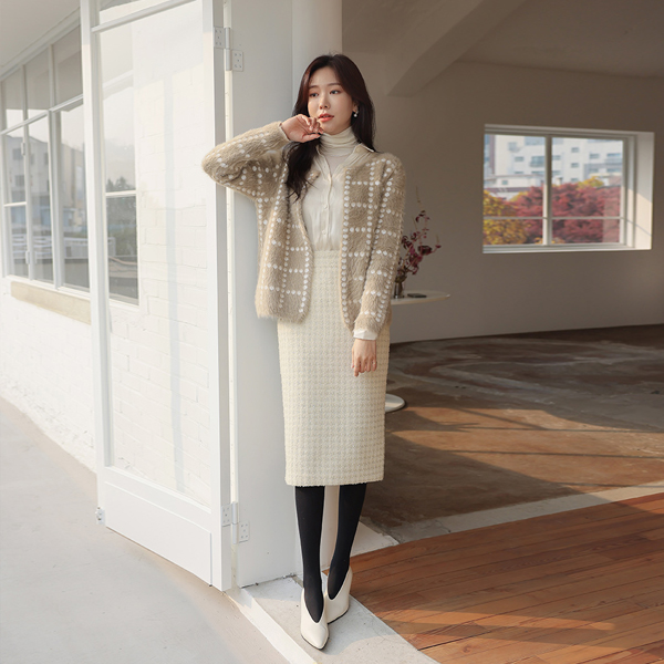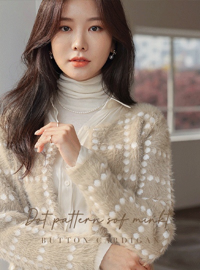 圆点 图案 柔丝 皮草大衣 单扣 开衫