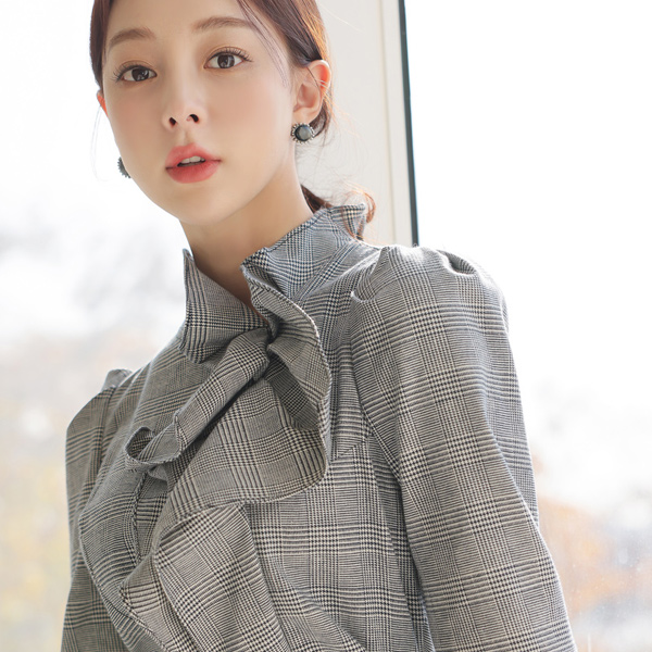 Louis荷叶边 苏格兰格子 罩衫