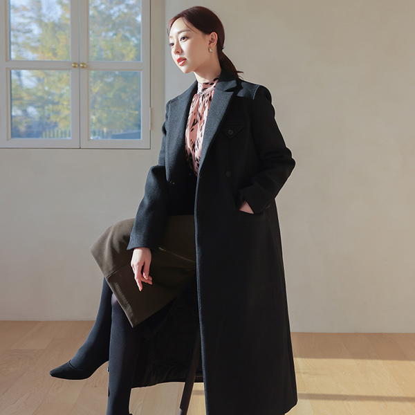 隐藏 双 扣子 束带 羊毛 大衣 (绗缝里料)