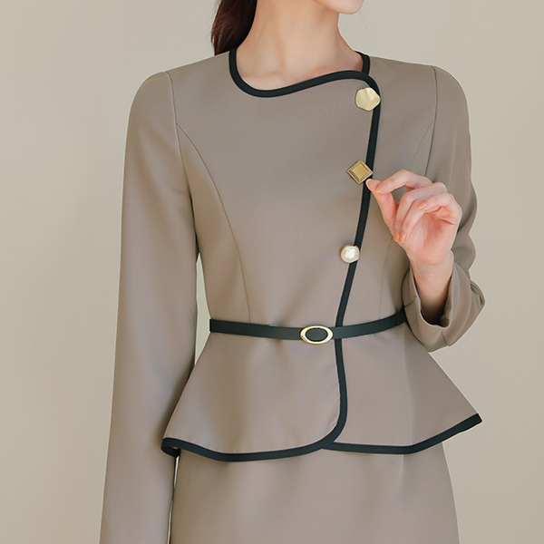 双 扣子 羊毛 荷叶边 夹克