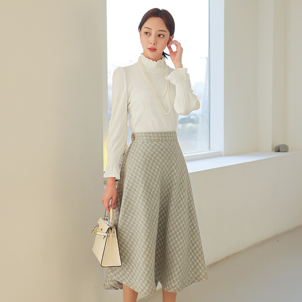丝绒 去皱纹 宽松袖 高领 T恤衫
