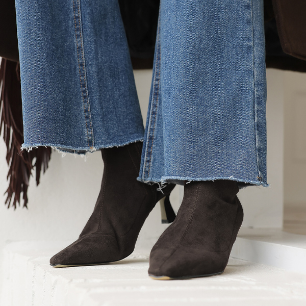 缝线 线条 翻毛皮 中跟 短靴